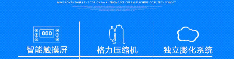 BQL-828立式冰淇淋機(jī),1.選用國際牌壓縮機(jī),輔以旭眾精湛工藝,大大縮短冰淇淋成型時間,高效節(jié)能;2.全新液晶智能觸控面板,簡單明了,多功能易操作;3.全新升級專業(yè)膨化泵,膨化率高,產(chǎn)量增加30%;4.一鍵清洗功能,省時方便;5.主要部件采用不銹鋼材質(zhì),時尚美觀,持久耐用;6.先進(jìn)的機(jī)械攪拌系統(tǒng),機(jī)器運(yùn)行穩(wěn)定可靠,低噪音,產(chǎn)品口感爽滑細(xì)嫩。