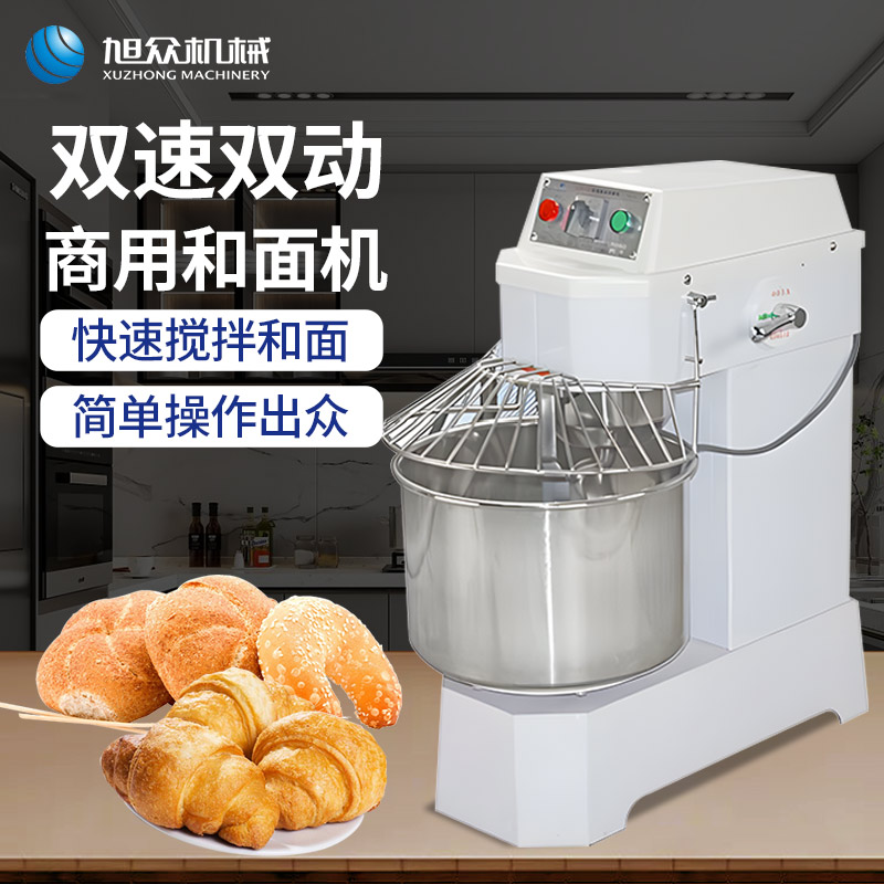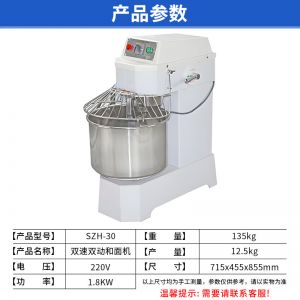 SZH-30型雙速雙動和面機,本機適合攪拌各種面包、包子、饅頭、湯圓、披薩餅面團,專業(yè)設計避免面團過分升溫并確保面團含氧量。過載、缺相保護裝置,防護罩安全連動裝置。
