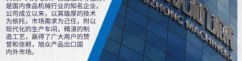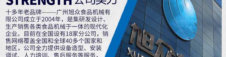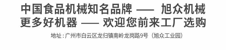 廣州旭眾食品機(jī)械有限公司是一家集科研開(kāi)發(fā),生產(chǎn)設(shè)計(jì),營(yíng)銷服務(wù)為一體的現(xiàn)代化生產(chǎn)企業(yè)。現(xiàn)代化生產(chǎn)車(chē)間,精湛制造技術(shù),所產(chǎn)機(jī)械歷經(jīng)市場(chǎng)重重考驗(yàn),不斷贏得海內(nèi)外客戶的贊譽(yù)。