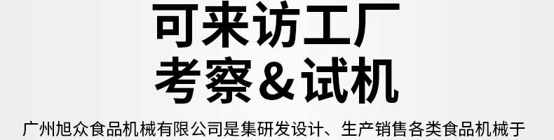 廣州旭眾食品機(jī)械有限公司是一家集科研開發(fā),生產(chǎn)設(shè)計(jì),營(yíng)銷服務(wù)為一體的現(xiàn)代化生產(chǎn)企業(yè)?,F(xiàn)代化生產(chǎn)車間,精湛制造技術(shù),所產(chǎn)機(jī)械歷經(jīng)市場(chǎng)重重考驗(yàn),不斷贏得海內(nèi)外客戶的贊譽(yù)。