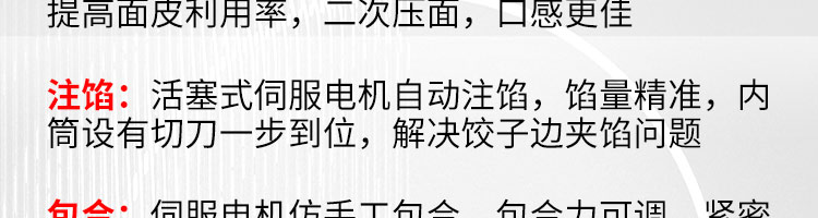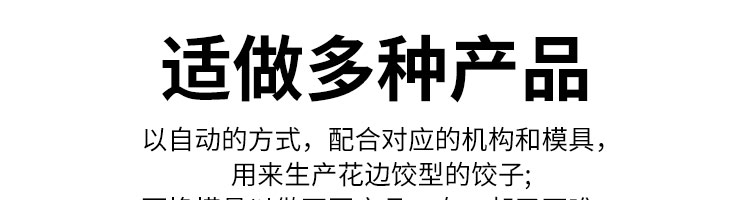 JGB-10型一體式餃子機(jī),制皮成型一體餃子機(jī),科技化生產(chǎn)/人性化設(shè)計。餃型可蒸、可炸、可煮,可適應(yīng)不同場合的客戶需求。功能、智能一體,以自動化科技與過硬質(zhì)量貼心服務(wù)。