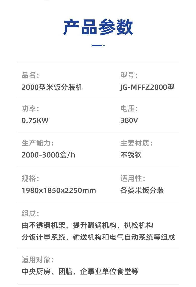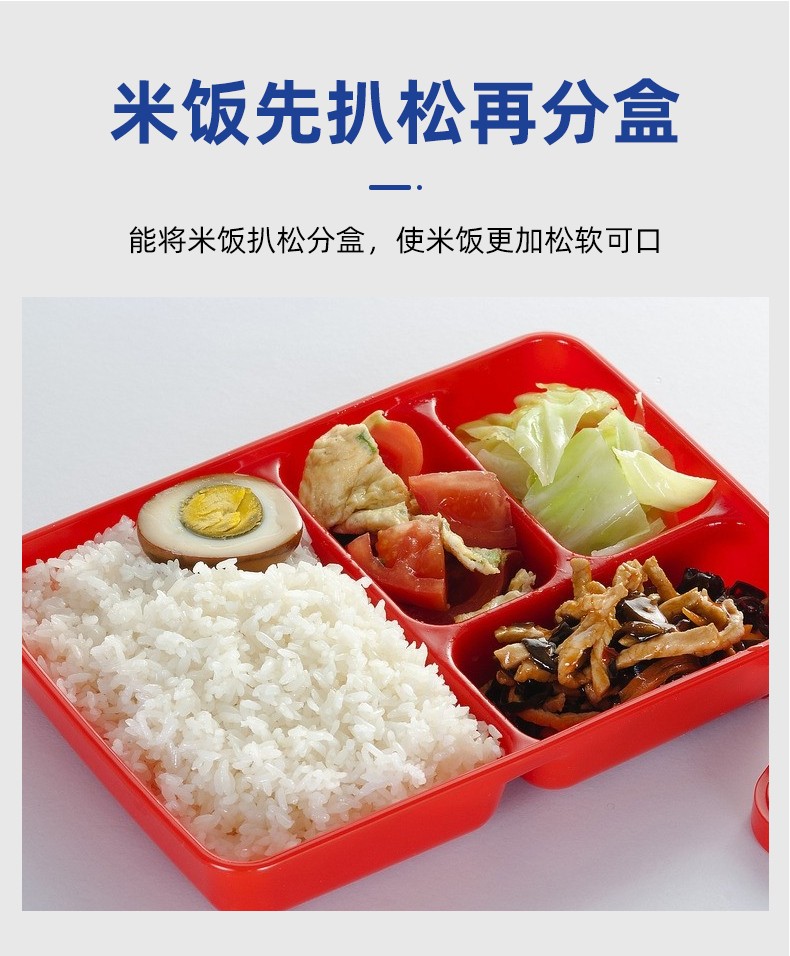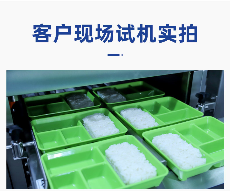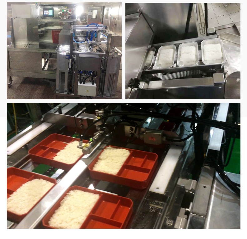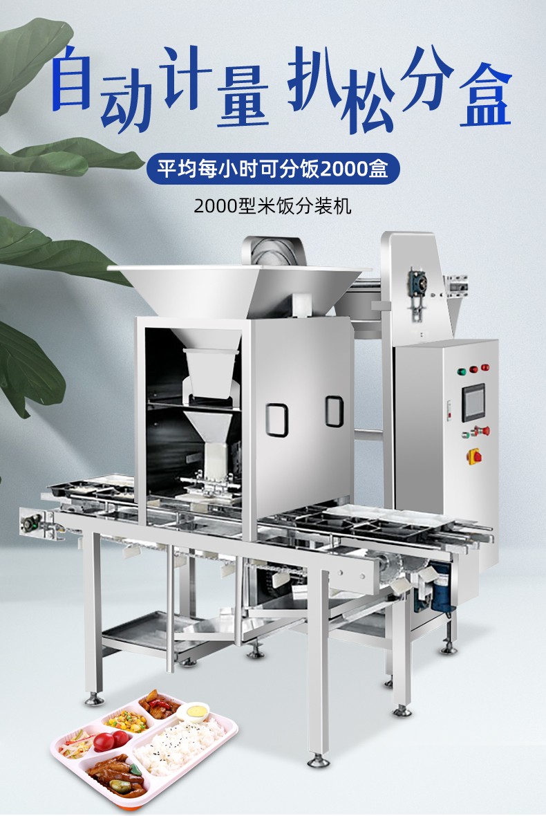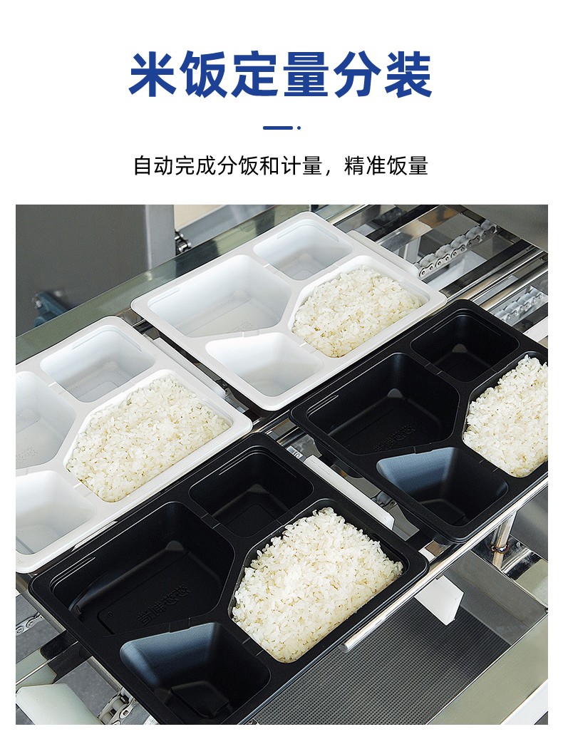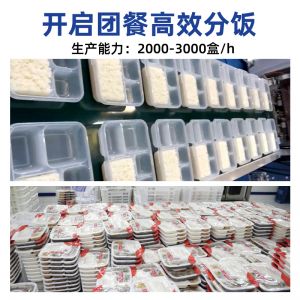 米飯分裝機,適用多場合大型米飯加工中心、快餐公司、大型配餐中心企事業(yè)單位、學(xué)校食堂、釀造企業(yè)。米飯定量分裝,自動完成分飯和計量,精準(zhǔn)飯量。米飯先扒松再分盒,能將米飯扒松分盒,使米飯更加松軟可口。
