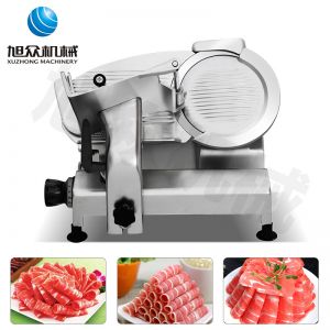 臺(tái)式全自動(dòng)切片機(jī),適合切無(wú)骨肉類和其他類似榨菜帶有彈性的食物,把原材料肉切成肉片,并可自動(dòng)成卷狀??汕信H馄?、羊肉片等