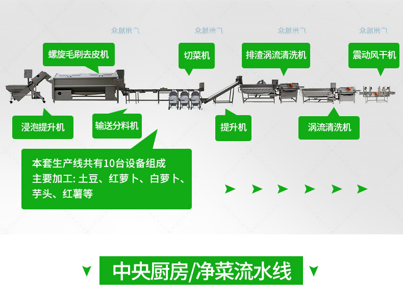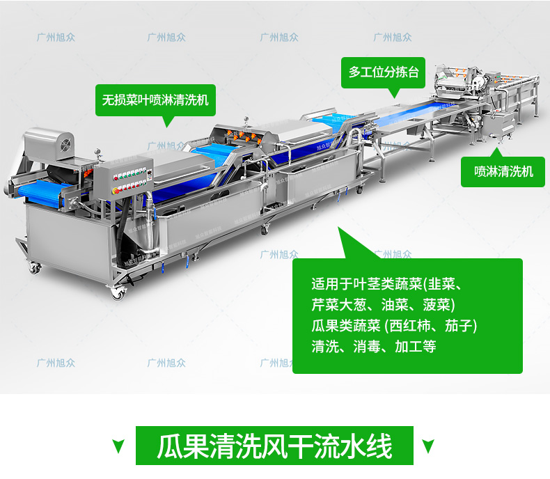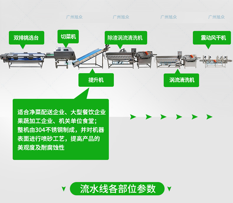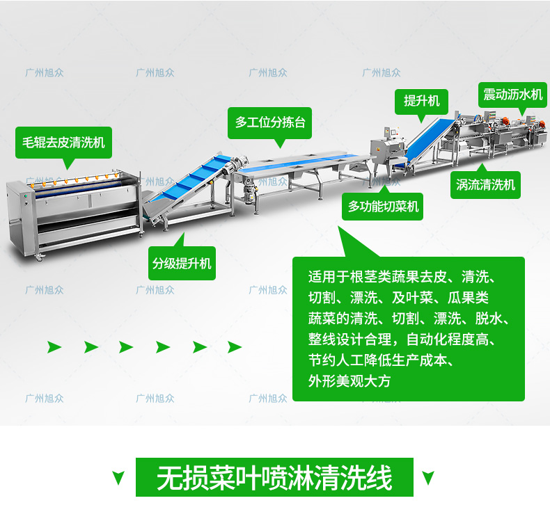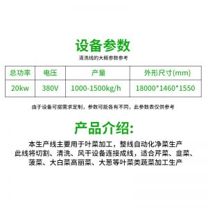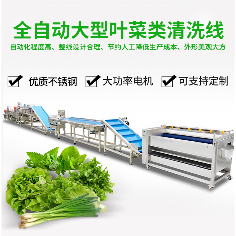 全自動大型葉菜清洗線,自動化程度高、整線設計合理、節(jié)約人工降低生產(chǎn)成本、外形美觀大方。主要用于葉菜加工,整線自動化凈菜生產(chǎn)此線將切割、清洗、風干設備連接成線,適合芹菜、韭菜菠菜、大白菜高麗菜、大蔥等葉菜類蔬菜加工生產(chǎn)