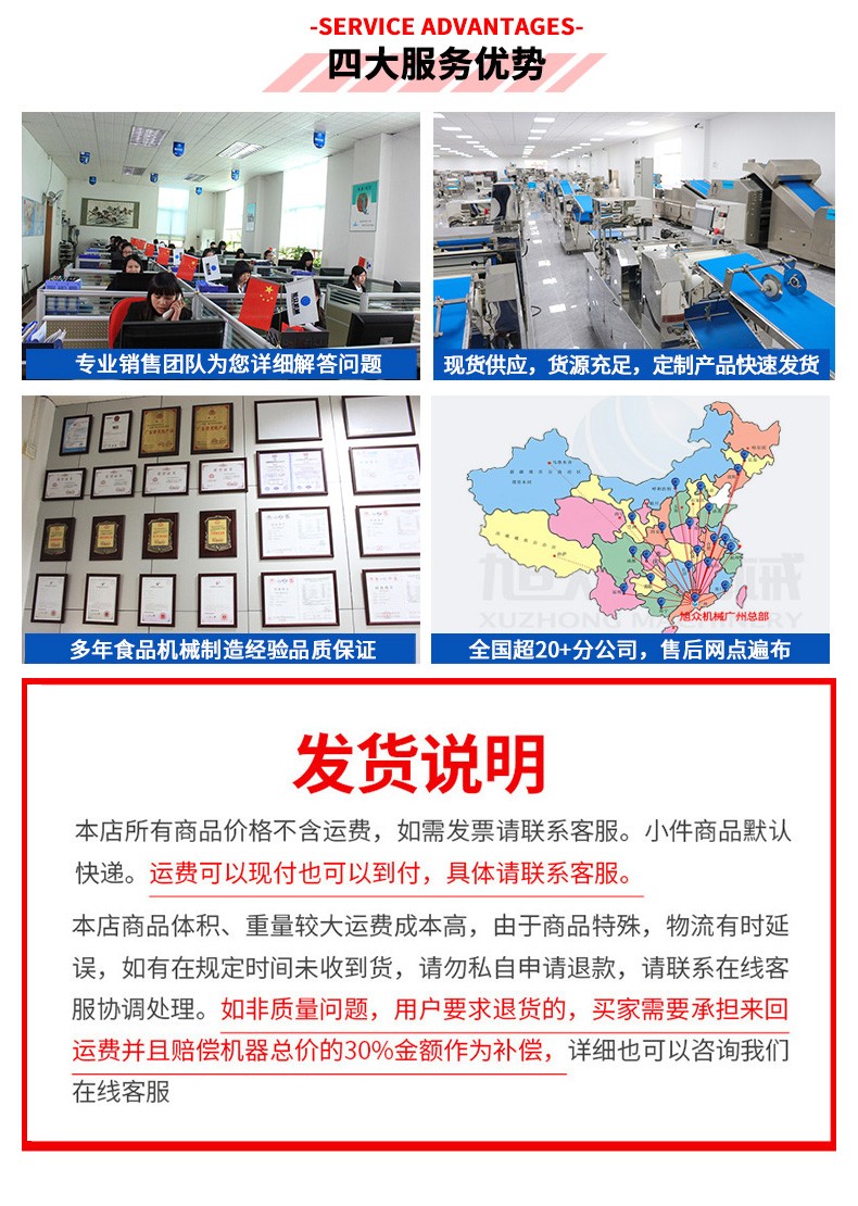 廣州旭眾食品機械有限公司是一家集科研開發(fā),生產(chǎn)設計,營銷服務為一體的現(xiàn)代化生產(chǎn)企業(yè)。現(xiàn)代化生產(chǎn)車間,精湛制造技術,所產(chǎn)機械歷經(jīng)市場重重考驗,不斷贏得海內外客戶的贊譽。