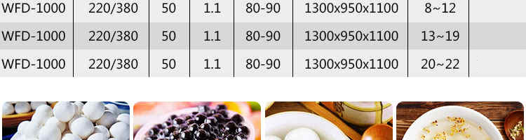 VFD-1000無餡湯圓機,本機可生產無餡湯圓、珍珠湯圓、桂花湯圓、奶茶所用的珍珠、檳榔紅丸、工藝品等。規(guī)格有8-34mm,可根據(jù)客戶要求定制。適用于個體戶、食品廠、學校等單位食堂。可滿足不同客戶群體。免費提供工藝技術。