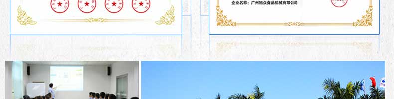 廣州旭眾食品機械有限公司是一家集科研開發(fā),生產設計,營銷服務為一體的現(xiàn)代化生產企業(yè)?,F(xiàn)代化生產車間,精湛制造技術,所產機械歷經市場重重考驗,不斷贏得海內外客戶的贊譽。